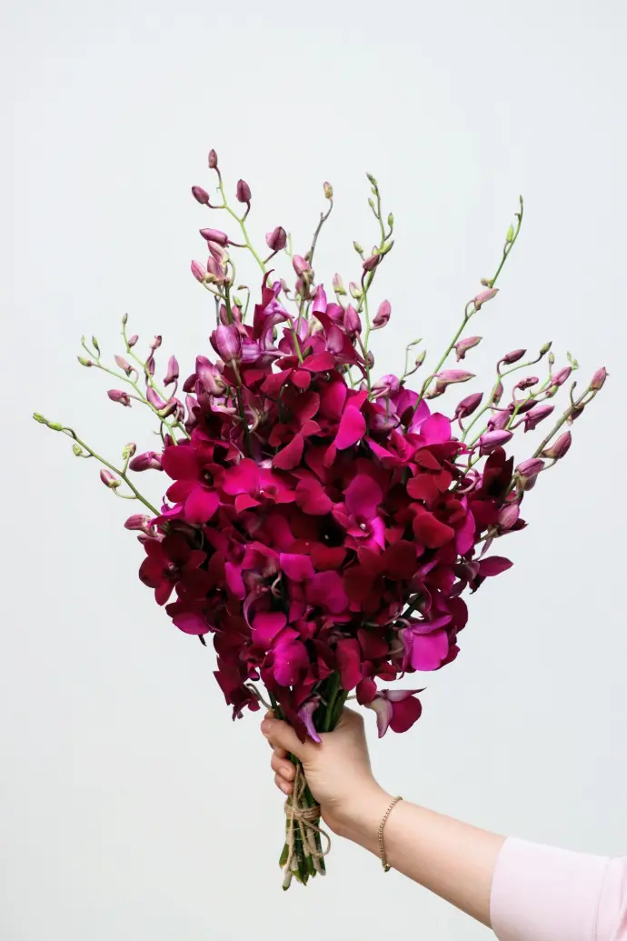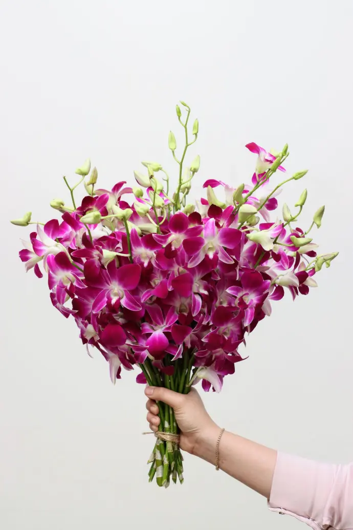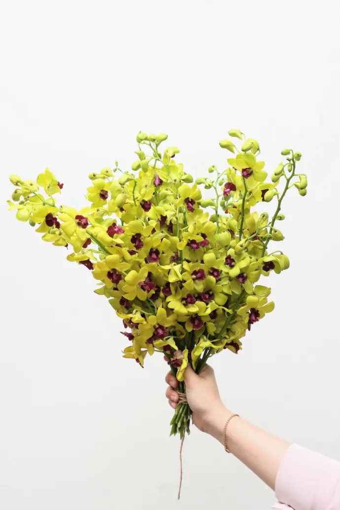 Over 5 dendrobium orchid colors: purple, white, green, yellow, and violet purchasable in our farm